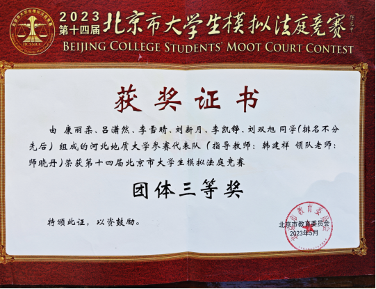 北京市模拟法庭大赛团体三等奖、第七届“互联网+”创新创业大赛校级二等奖、麻豆性爱