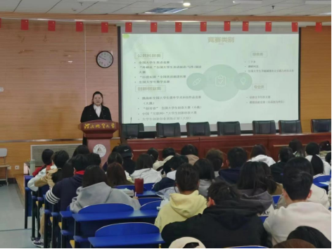 在本次交流会上,陈玉佩同学以自己参与的学科竞赛为例,从竞赛类别、竞赛内容以及如何进行团队组建、方向选题进行了详细介绍,深入剖析了竞赛中遇到的挑战与困难,并分享了应对策略和成功经验。鼓励同学们要着力提升专业竞赛水平,培养团队合作意识和交流能力。