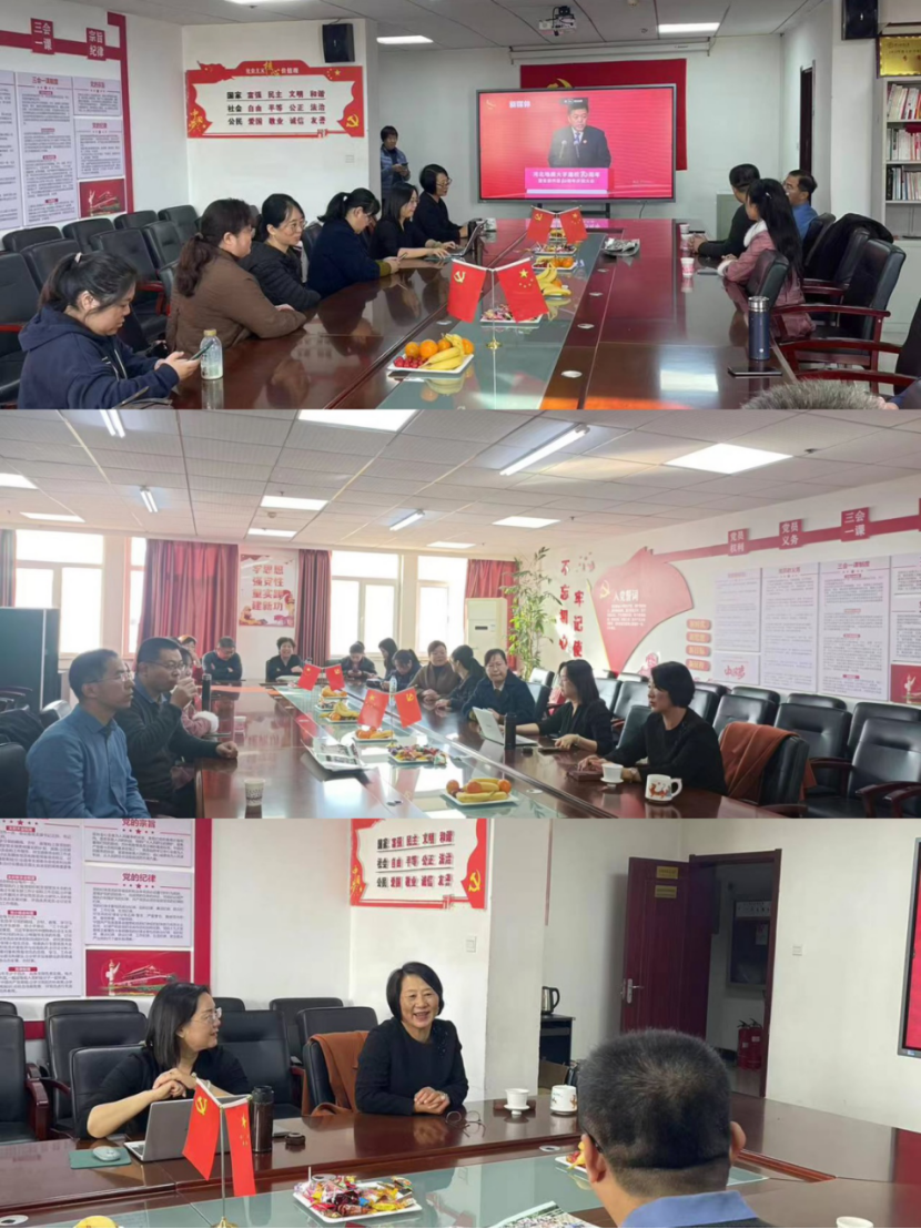 在综合楼506会议室举办70周年校庆师生座谈会并观看校庆直播。院长侯丽艳、教师代表、20余名校友代表出席座谈会。