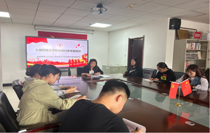 于综合楼506举行了2023年秋季入党积极分子和发展对象专题培训开班仪式暨专题培训会,会议由党委副书记朱晓玲主持,学生党支部书记杨柳、本期全体入党积极分子和发展对象参加会议。