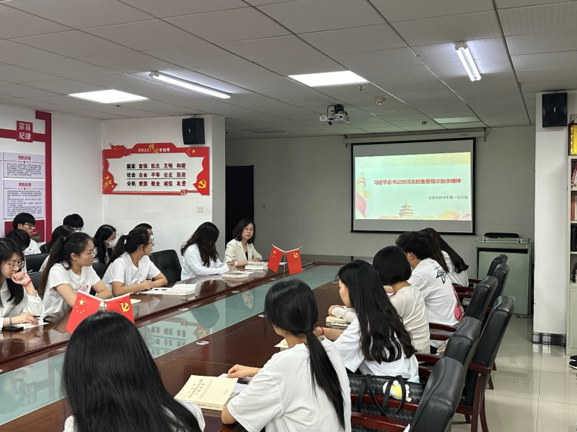 学生第一党支部组织委员王璐凡主持,党委书记马沁芳、支部书记杨柳,以及支部全体党员参加了会议。