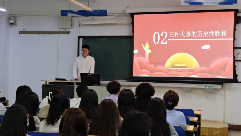 李洪举同志带领同学们回顾了三件大事的历史性胜利,分别为迎来中国共产党成立一百周年、中国特色社会主义进入新时代、完成了脱贫攻坚全面建成小康社会的历史任务,实现第一个百年奋斗目标。从体悟党的漫漫征途和历史伟绩中鼓舞大家心往一处想、劲往一处使,为全面建设社会主义现代化国家、全面推进中华民族伟大复兴而团结奋斗,用新的伟大奋斗创造新的伟业。