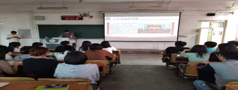 蔺一辰同志开篇点题,首先介绍了党的二十大召开的背景,讲述了党的第二十次全国代表大会,是在全党全国各族人民迈上全面建设社会主义现代化国家新征程、向第二个百年奋斗目标进军的关键时刻召开的一次十分重要的大会。从党的历史来看,党的二十大是在我们党成功走过百年奋斗历程、又踏上新的赶考之路的关键时刻召开的一次重要会议。