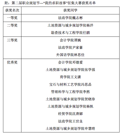 、外国语学院、宝石与材料工艺学院、管理科学与工程学院、土地资源与城乡规划学院、勘查技术与工程学院、商学院、经贸学院的16位毕业生脱颖而出进入决赛。