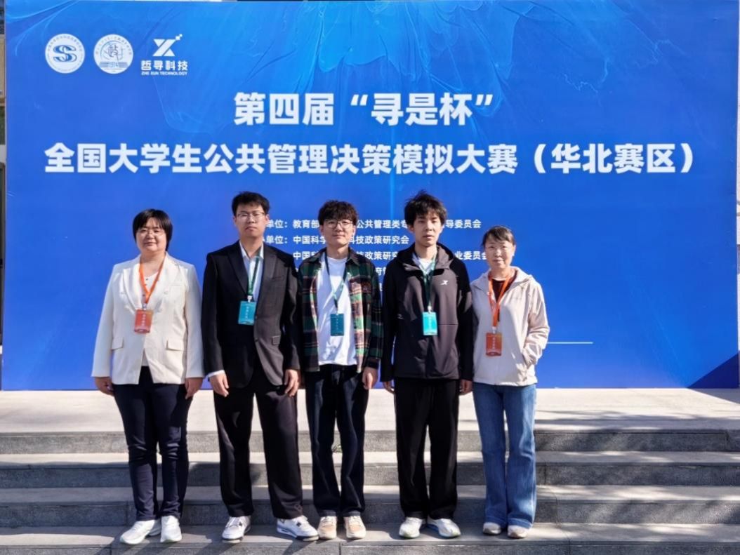 公共管理系大二本科生黄子豪、李沫轩、孔德怀三名同学在该系教师吴元元、李倩的带领下赴京参加第四届“寻是杯”全国大学生公共管理决策模拟大赛华北赛区比赛。“寻是杯”全国大学生公共管理决策模拟大赛是教育部高等学校公共管理类专业教学指导委员会指导、中国科学学与中国科技政策研究会主办的面向全国高校公共管理学科相关专业本科在校大学生的专业竞赛项目。此次比赛共47支队伍参加,比赛包括方案设计、沙盘对抗、展示答辩三个环节。经过两天激烈角逐,三名队员最终获得二等奖。