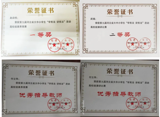 的付立华老师凭借其出色的指导,荣获“高校组素养竞赛优秀奖指导教师”以及“高校组演讲比赛优秀奖指导教师”称号,充分彰显了我校在宪法教育与人才培养方面的雄厚实力与突出成效,为学校争得了荣誉,也为广大师生树立了良好的榜样。