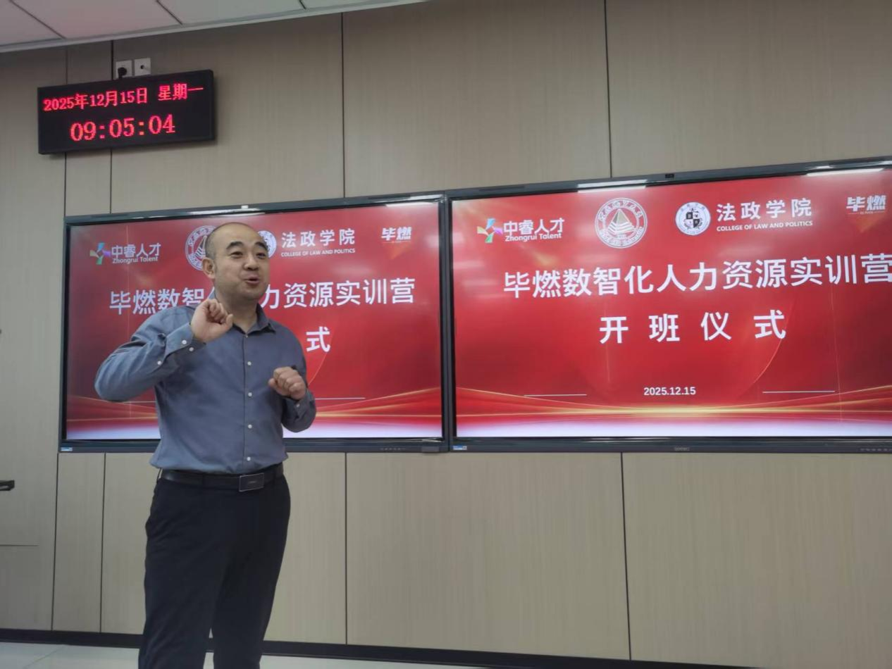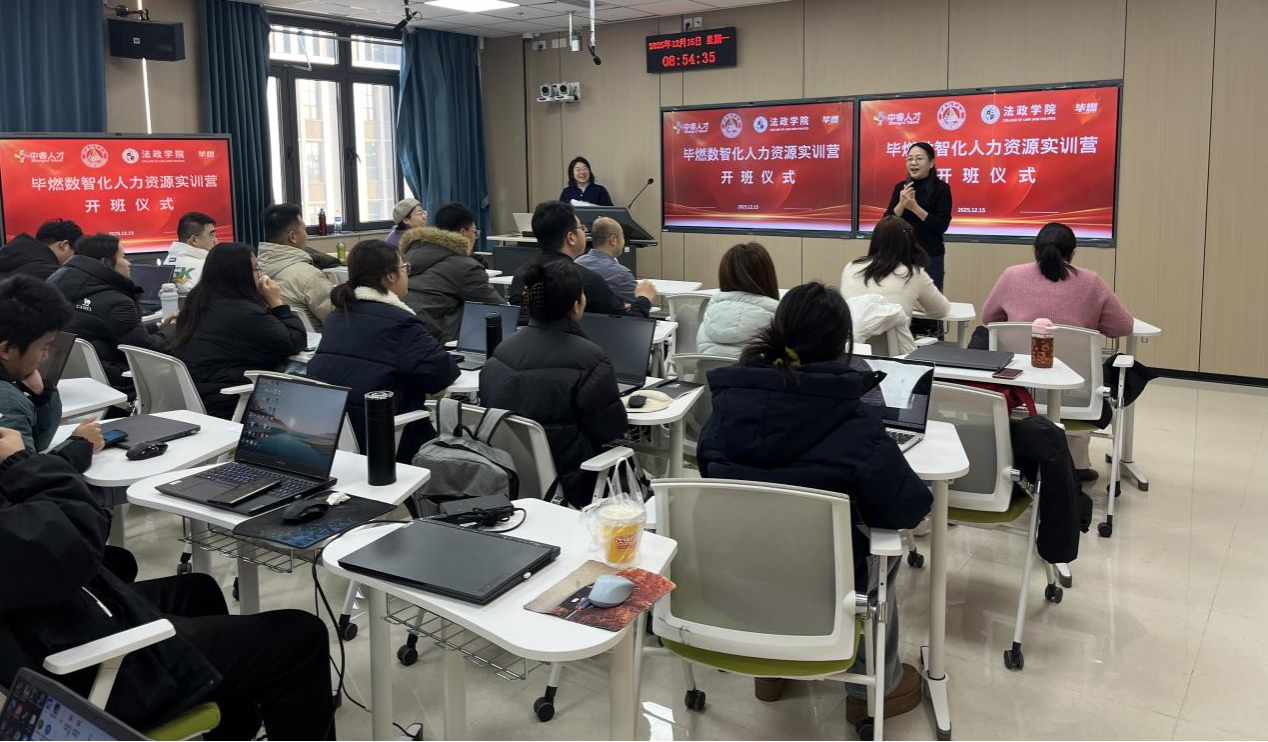 12月15日,经过多方筹备,“毕燃数智化人力资源实训营”正式开班。董莉作开班致辞,对中睿人才集团的倾力支持表示感谢,指出此次实训营是校企合作优势互补的落地实践,并鼓励同学们,选择进入实训营就是选择了自我成长,注重培养内驱力,将拥有不一样的人生体验,也是走向职场成功的重要基石。院长助理葛丽明表示本次实训为学院教学改革提供了新思路,今后,学院将继续推动教学改革,为学生提供更多实训机会,助力学生成长成才。